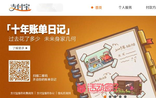 2015年12月,支付宝发起了一场“十年账单日记”活动。用户在对支付宝app进行最新版升级以后,就可以查看自己在支付宝十年的账单,看看自己在支付宝的十年到底花了多少钱。一时间,朋友圈又被“晒账单”、“看排名”、“找槽点”支付宝日记刷屏,该活动快速引爆社交网络。