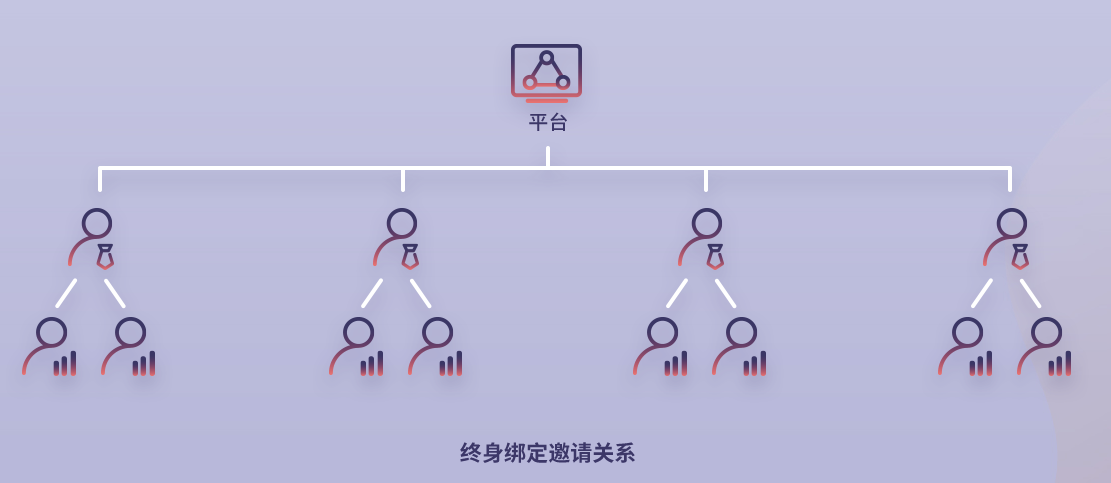 推荐制度,永久锁定上下级关系链,持续分红激励,防止高级别分销商流失,同时加快刺激团队裂变速度;